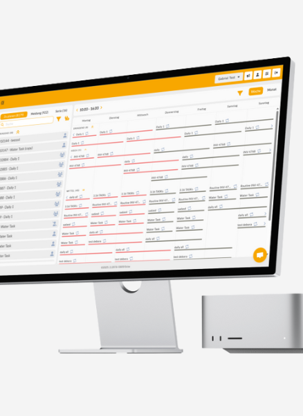 Anschliessend wirft das Team einen Blick auf den Kalender: Bereits eingeplante Aufgaben und Serien werden überprüft und Ressourcen und Informationen abgeglichen. Neue, noch nicht terminierte Aufträge werden direkt in der Planungsansicht erstellt und sinnvoll in den bestehenden Zeitplan integriert, ohne dabei einzelne Teammitgliedern zu überlasten.